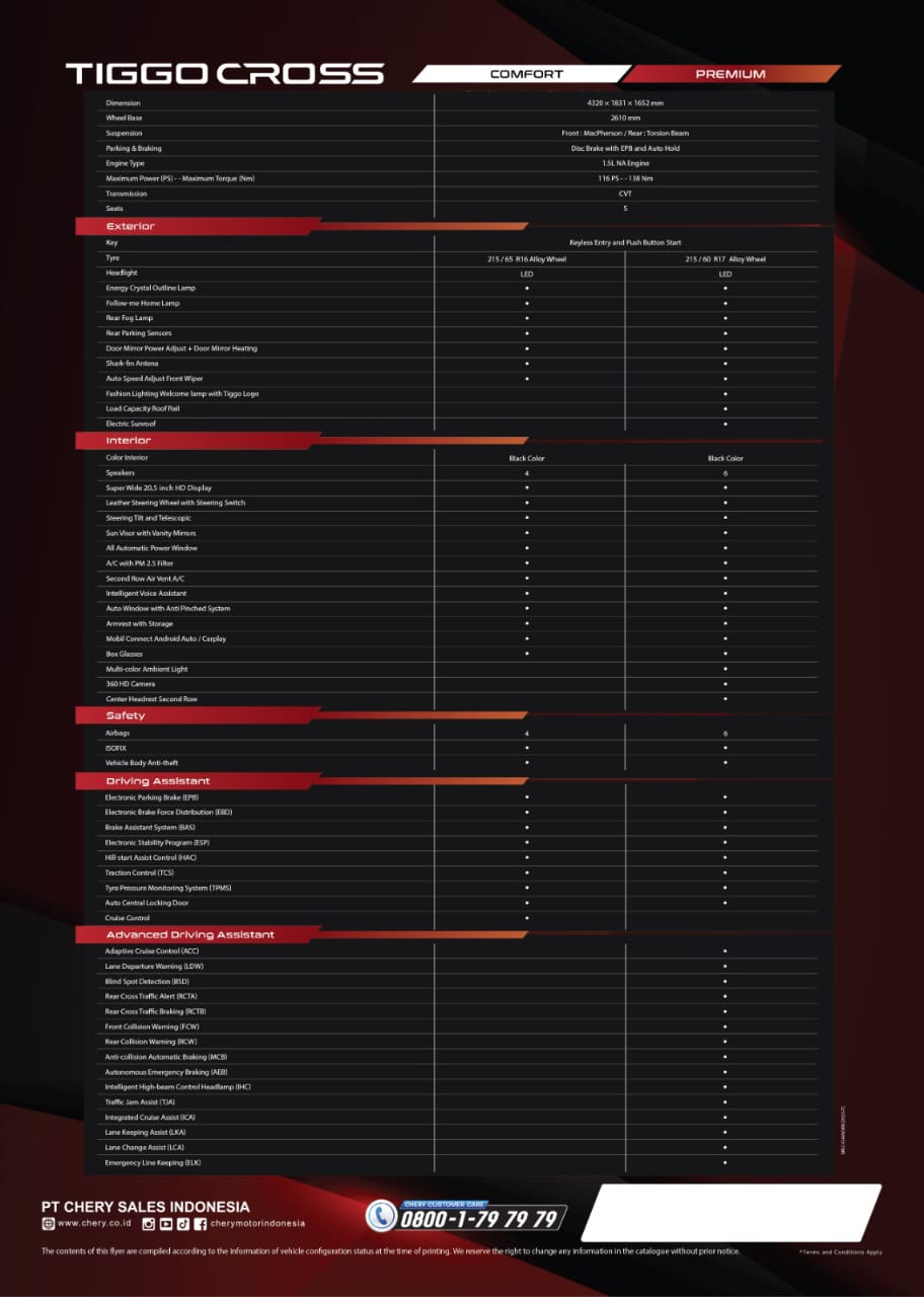 Tiggo Cross Comfort | Rp. 239.500.000 |